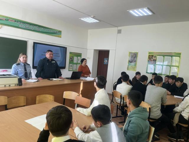 Жиналыста қылмысты болдырмау, құқық бұзушылықтың алдын-алу мақсатында оқушыларға түнгі сағат 23:00 ден таңғы 6-ға дейін заңды өкілдерінің еріп жүруінсіз тұрғын үй-жайдан тыс жерлерде болмауы, түнгі сағат 22:00 ден таңғы 6-ға дейінгі уақыт аралығында заңды өкілдерінің еріп жүруінсіз ойын-сауық мекемелерінде болмауы, алкоголь өнімдерін, темекі бұйымдарын тұтынбау, шанышпалы-кесетін, үшкір бұйымды заттарды өздерімен алып жүрмеу, мүлдем автокөлік, мотокөлік, мопед басқармау, қорқытып алушылық пен бопсалаушылыққа жол бермеу, жаппай төбелестің алдын-алу және ұрлық қылмыстарының алдын-алу мақсатында бөтеннің мүлкіне қол сұқпау бойынша түсіндірме жұмыстары жүргізілді.