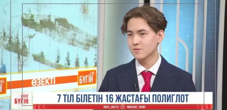 АСТАНА. KAZINFORM — Қазақстандық 16 жасар мектеп оқушысы Бахтияр Сәдібеков бүгінде 7 тілді еркін меңгеріп, Оман Сұлтандығының елшісіне аудармашылық қызмет көрсетіп жүр. Дипломатиялық ортада мойындалып үлгерген жас полиглот тіл үйренудің құпиялары мен болашақ жоспарлары туралы Jibek Joly телеарнасының Bugin LIVE бағдарламасында баяндап берді.