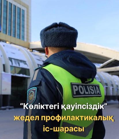 Ағымдағы жылдың 19–23 қаңтар аралығында көліктегі полиция қызметкерлері теміржол аймағында азаматтардың қауіпсіздігін қамтамасыз ету мақсатында «Көліктегі қауіпсіздік» жедел профилактикалық іс-шарасын өткізуде.