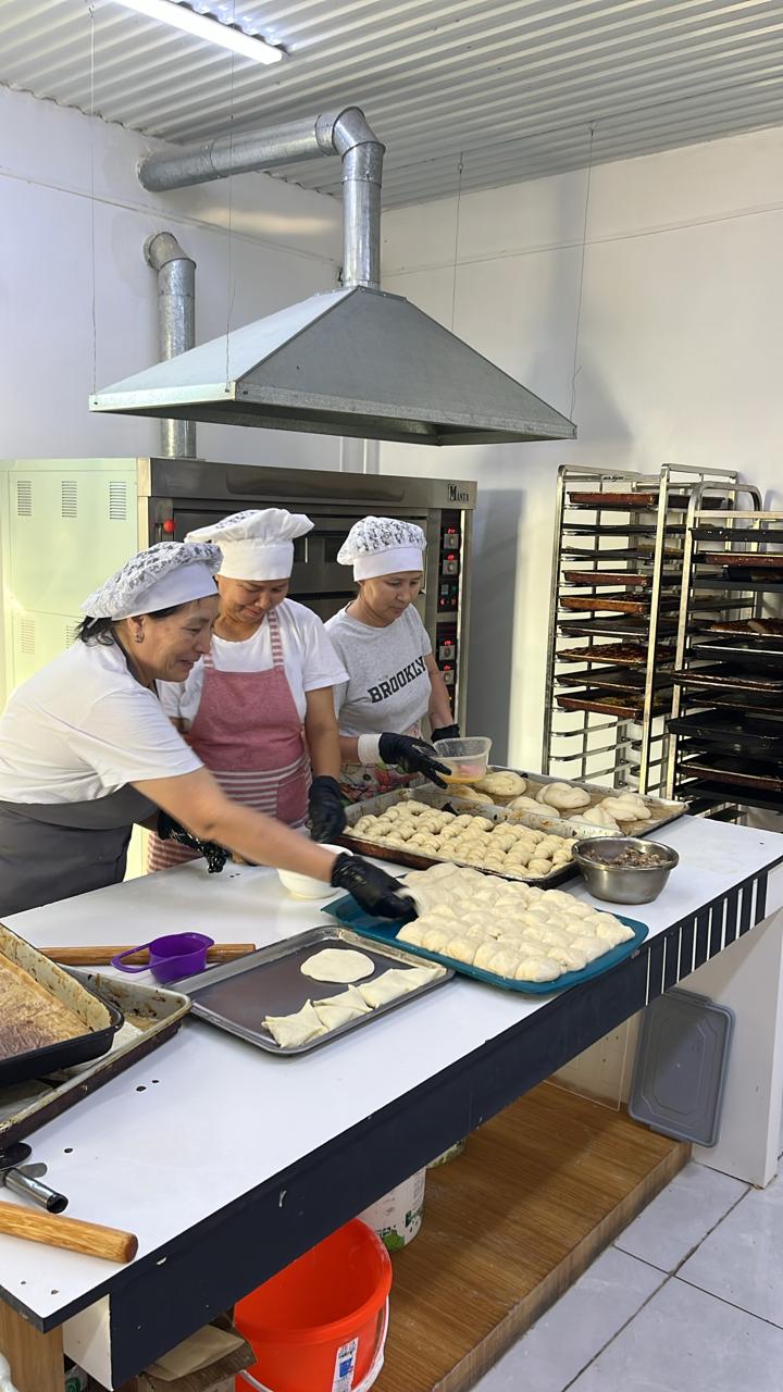 Цехта барлығы 16 адам жұмыс жасайды, оның екеуі – көлік жүргізуші. Наубайхананың жұмысы таңғы 03.00-де басталып, түнгі 00.00-ге дейін жалғасады екен.