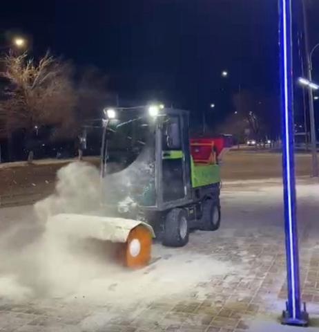 Қар жауа бастаған сәттен бастап қалада арнайы техника мен жұмысшы топтар толықтай іске қосылды. Жалпы алғанда, қар тазалау жұмыстарына 12 бірлік арнайы техника жұмылдырылды. Оның ішінде 2 щеткалы және реагент себетін КДМ техникасы, автожолдарды тазалауға арналған 4 щеткалы МТЗ тракторы, 2 тиегіш погрузчик, 2 самосвал, тротуарларды қардан тазалау және реагент себуге арналған 2 «ROVER SNOW» техникасы, сондай-ақ 2 механикалық щеткалы тротуар тазалау аппараты пайдаланылды.