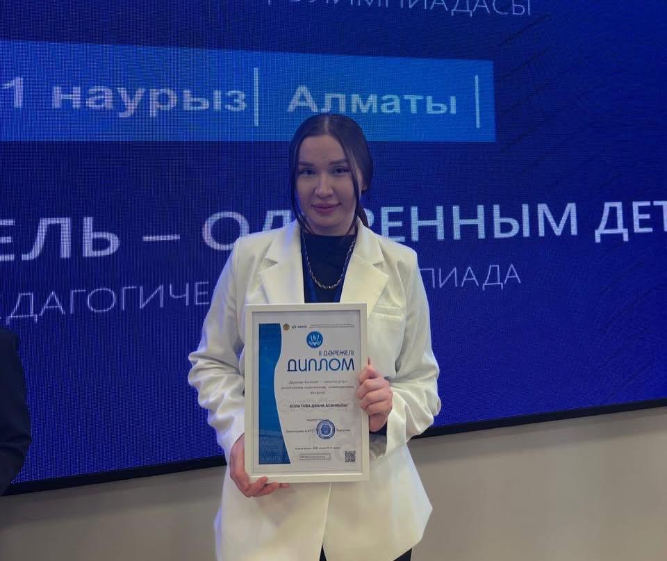 Педагогикалық олимпиаданың республикалық кезеңінде Атырау облысынан 8 жас ұстаз қатысып жүлделі орындарға ие болды. Оның ішінде «Жас педагог» номинациясы бойынша облыс намысын қорғаған Құрманғазы ауданы, Еңбекші жалпы орта мектебінің қазақ тілі мен әдебиеті пәнінің мұғалімі Диана Болатова жүлделі ІІ орынды жеңіп алды. Жас маманның педагогикалық өтілі – 2 жыл.