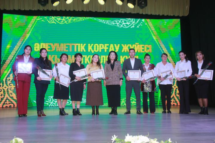 Оған күні бүгінге дейін 100-дің үстінде өтініштер түсіп, соның 98 пайызы қанағаттандырылды. Мұның барлығы әлеуметтік салада мемлекет тарапынан жасалып жатқан оңды істер екенін атап өткім келеді, – деп сала қызметкерлеріне амандық, отбастарына жақсылық тілеп, сала ардагері Маргарита Нажимованы «Әлеуметтік еңбек саласының үздігі» төсбелгісімен, әлеуметтік сала қызметкерлері Дина Зарипова, Софья Ахметқалиеваны облыс әкімінің, 14 адамды аудан әкімінің Алғыс хатымен ұлықтады. Осы салада ұзақ жылдар абыройлы қызмет атқарған Гүлнар Мырзалықызына, Базарбай Өтеуліұлына, Гүлжиян Тілешқызына естелік сыйлықтар ұсынылды.