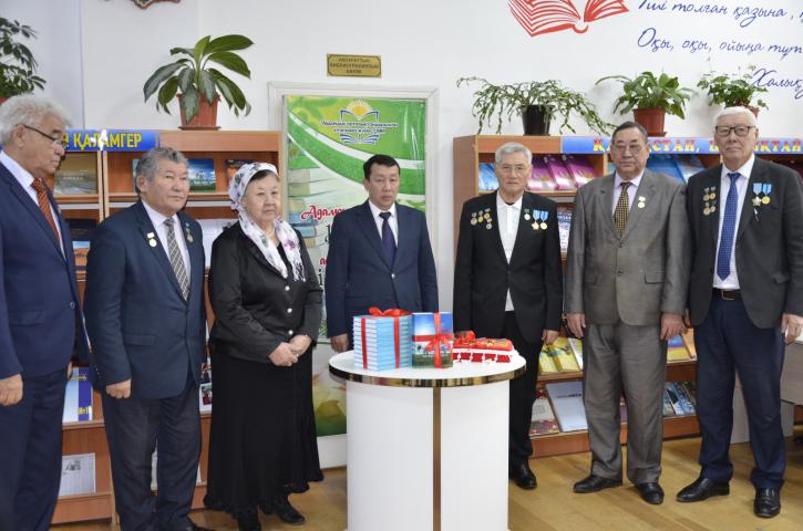 Табиғатынан еңбекқор, шынайы дарын иесі, ауданымыздың тарихында өзіндік орны бар қайталанбас тұлға, академик-жазушы, өлкетанушы Өмірзақ Қажымғалиұлының шығармашылығына арналған кітап көрмесіне кітапхана библиографы Гулайна Жалғасбайқызы «Өлке шежіресін өрнектеген қаламгер» тақырыбында шолу жасап, Нұржау орта мектебінің оқушысы Азамат Ғазиз, кітапханашылар Снежана Сәрсенбайқызы, Әсем Исатайқызы жазушыға арналған Рахмет Иманғалиевтің, Таңатар Дәрелұлының өлеңдерін оқыды. Сонымен қатар Ө.Қажымғалиевтің кітаптарына арналған сурет көрмесі назарға ұсынылып, «Дариға дәурен» кітабы негізіндегі «Мәңгілім менің» қойылымы тамашаланды. Қазақстан Жазушылар Одағының мүшесі, Қазақстанның Құрметті Журналисі, Қазақ журналистикасының қайраткері, «Құрмет» орденінің иегері, Құрманғазы ауданының Құрметті азаматы Таңатар Дәрелұлы тұсауы кесілгелі отырған «Арылу» кітабын таныстырып, автордың шығармашылығына жоғары баға берді. «Шаңқанбоз» кітабы экран арқылы таныстырылды.
