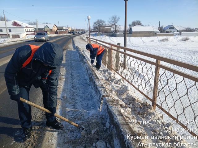 Аудан орталығы Құрманғазы ауылында ауылішілік жолдарды күтіп ұстаушы «Ганюшкин құрылыс» ЖШС мекемесі көшелер мен жол бойындағы қарды тазалау және шығару жұмыстарын жүргізуде.