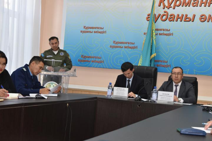 Оған аудан әкімінің орынбасары Амангелді Мұратов, Атырау облысы Ауыл шаруашылығы және жер қатынастары басқармасы басшысының орынбасары Әлібек Ермекқали, осы басқарманың ветеринария бөлімінің басшысы Элеонора Есентаева, облыстық мәслихаттың депутаты, «Ауыл» партиясының мүшесі Қадыржан Арыстан, аудан прокурорының орынбасары Аянбек Сүйінәлиев, «Amanat» партиясы аудандық филиалының төрағасы Ерлан Хисметуллин, аудандық мәслихаттың депутаты Есболат Құбашев, аудандық кәсіпкерлік және ауыл шаруашылығы бөлімінің басшысы Нұрлыбек Төлепов қатысты.