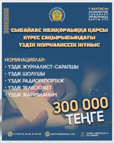 9 желтоқсан – Халықаралық сыбайлас жемқорлыққа қарсы күрес күніне орай ұйымдастырылған байқау бұқаралық ақпарат құралдары мен әлеуметтік желілерде жарияланған үздік материалдарды анықтауға бағытталды.
