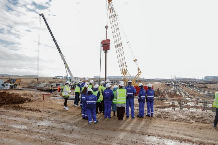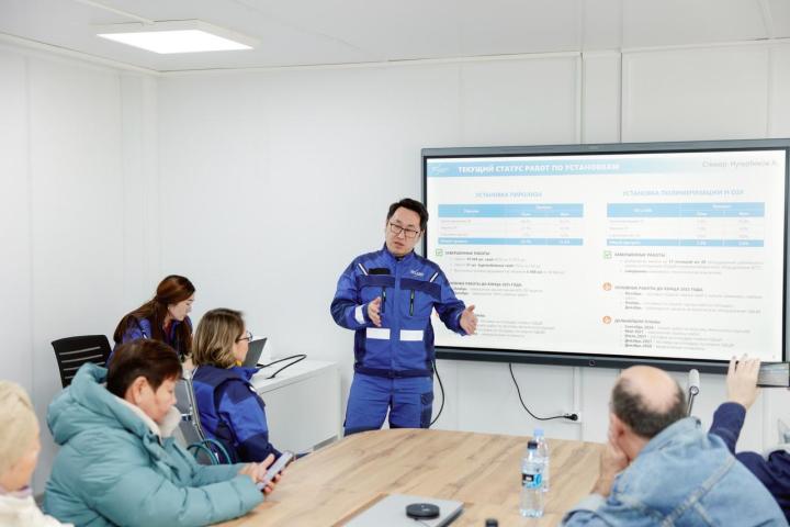 Қатысушылар құрылыс барысымен танысып, пиролиз қондырғысының алаңын аралап көрді, жобаның жүзеге асырылуы, қоршаған ортаны қорғау және болашақ өндірісте қолданылатын технологиялар туралы сұрақтар қойды.