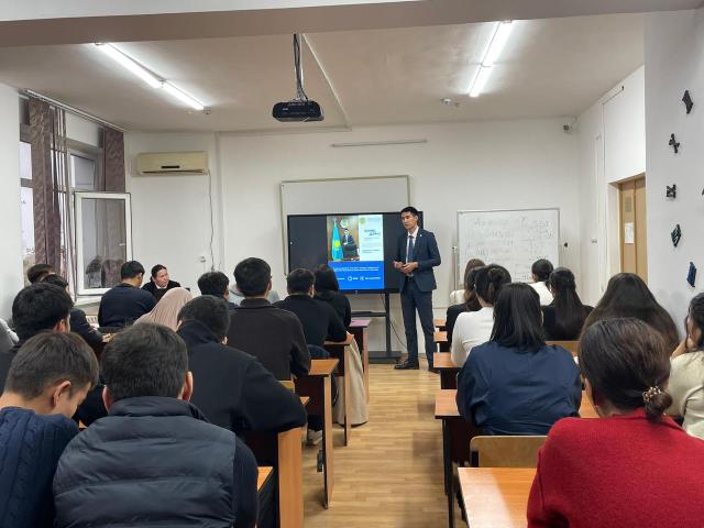 Іс-шара барысында студенттер өздерін қызықтырған сұрақтарына жауап алып, еліміздің экономикалық даму перспективаларымен және мемлекеттік қызмет жүйесінің мүмкіндіктерімен танысты.