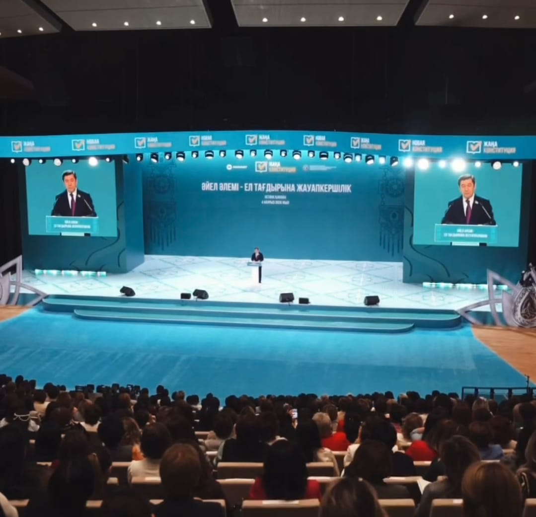 Залда Қазақстанның барлық өңірінен келген мыңға жуық көшбасшы әйел – білім беру, денсаулық сақтау, кәсіпкерлік, ғылым, әлеуметтік салаларының және азаматтық сектордың өкілдері жиналды. Іс-шара аясында жаңа Конституцияны қабылдау бойынша 15 наурызда өтетін референдум талқыланды.