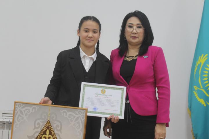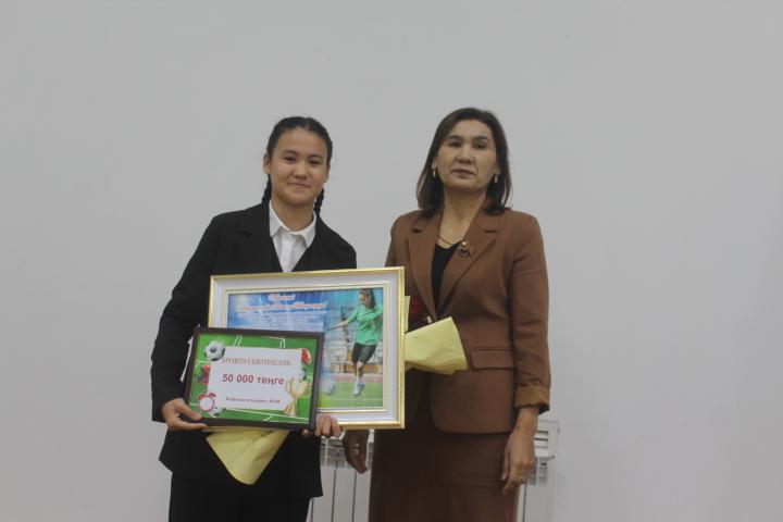 Аудан әкімі жақында Астана қаласында өткен KFF League Awards марапаттау рәсімінде Қазақстан әйелдер лигасының «Үздік жас ойыншы» аталымын иеленген М.Әуезов атындағы жалпы орта мектебінің 11 сынып оқушысы Ботагөз Жұмажанованы қабылдап, жас спортшыға құрмет көрсетті.